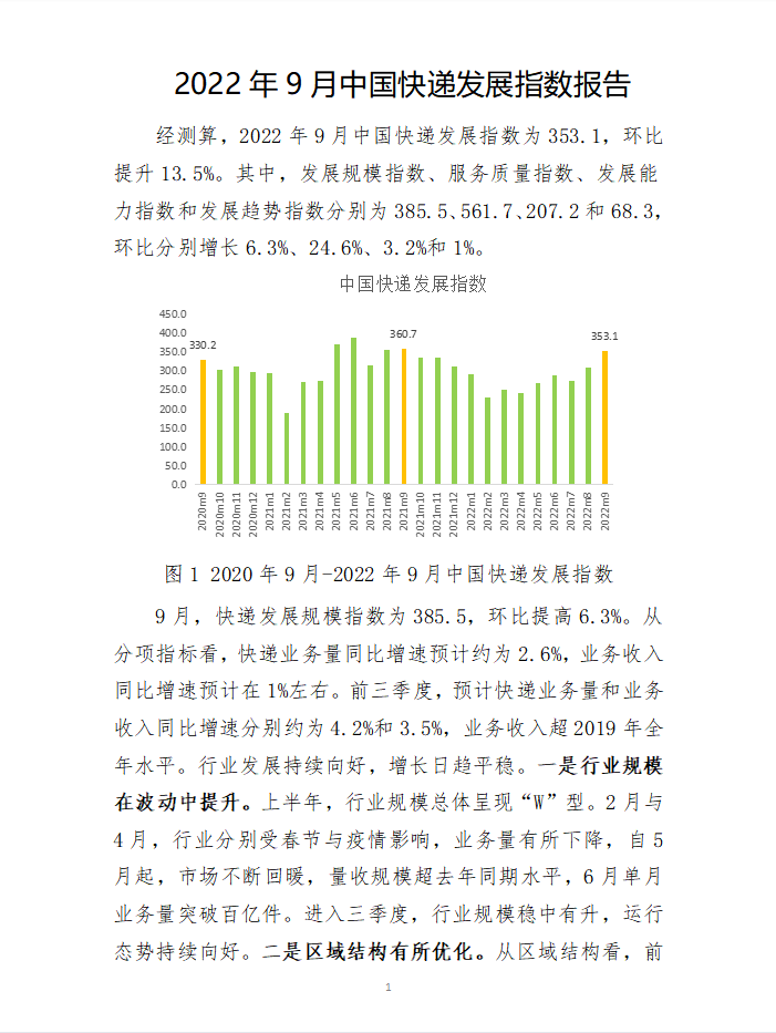2022年9月中國快遞發(fā)展指數(shù)報告