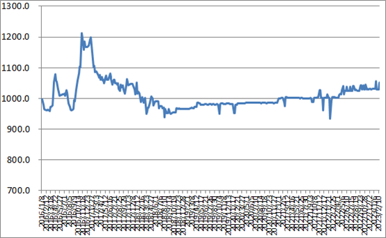 圖1 2016-2023年各周中國公路物流運價指數(shù)