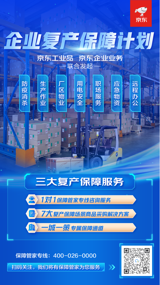 “企業(yè)復(fù)產(chǎn)保障計劃”通過整合京東的供應(yīng)鏈優(yōu)勢資源,首先解決的就是企業(yè)復(fù)工復(fù)產(chǎn)的高頻物資需求。在復(fù)產(chǎn)保障線上專區(qū),企業(yè)能夠快速完成防疫消殺、應(yīng)急物資、勞動保護、職場服務(wù)等不同場景所需的物資采購。京東慧采SaaS專屬采購平臺,支持尋源、在線協(xié)議、電子發(fā)票、自動對賬等功能,幫助企業(yè)實現(xiàn)一站式、無接觸高效采購。還有專人專線的“服務(wù)管家”為企業(yè)提供售前、售中、售后全套服務(wù)方案。