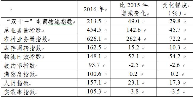 中國物流與采購聯(lián)合會(huì)與京東集團(tuán)聯(lián)合調(diào)查的2016年“雙十一”中國電商物流指數(shù)為213.5點(diǎn),比去年“雙十一”期間增加49點(diǎn),增長(zhǎng)29.8%。