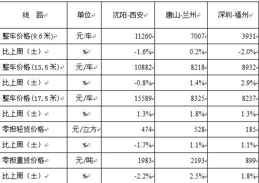從分地區(qū)指數(shù)來看,各地區(qū)運(yùn)價(jià)指數(shù)均有不同程度回落。其中, 東北及西北指數(shù)回落幅度相對(duì)較高,比上周回落0.3%左右;珠三角及東部沿海地區(qū)運(yùn)價(jià)指數(shù)回落幅度相對(duì)較低,比上周回落0.1%左右。