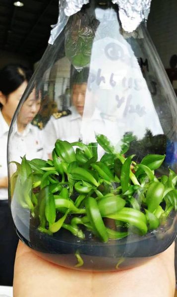 圖為:從日本進(jìn)口的大花蕙蘭幼苗快速通關(guān) 劉詩月/攝