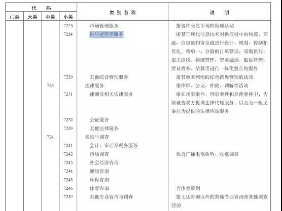 在最新批準(zhǔn)發(fā)布的《國民經(jīng)濟行業(yè)分類》(GB/T4754-2017)中,明確了供應(yīng)鏈管理服務(wù)單列統(tǒng)計類別:商務(wù)服務(wù)業(yè)-7224-供應(yīng)鏈管理服務(wù)。這將對供應(yīng)鏈管理服務(wù)業(yè)持續(xù)、健康、有序發(fā)展發(fā)揮重要作用。該標(biāo)準(zhǔn)已于2017年10月1日正式實施。