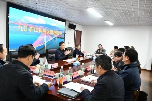 2024年3月5日,九江市委常委,市政府黨組成員、副市長(zhǎng)榮學(xué)文帶隊(duì)專題調(diào)研九江機(jī)場(chǎng)發(fā)展和基礎(chǔ)設(shè)施運(yùn)行情況,并組織相關(guān)單位召開(kāi)開(kāi)座談會(huì),進(jìn)一步明確機(jī)場(chǎng)發(fā)展目標(biāo)和基礎(chǔ)設(shè)施重點(diǎn)提升項(xiàng)目,現(xiàn)場(chǎng)會(huì)商解決機(jī)場(chǎng)發(fā)展的難點(diǎn)堵點(diǎn)問(wèn)題。