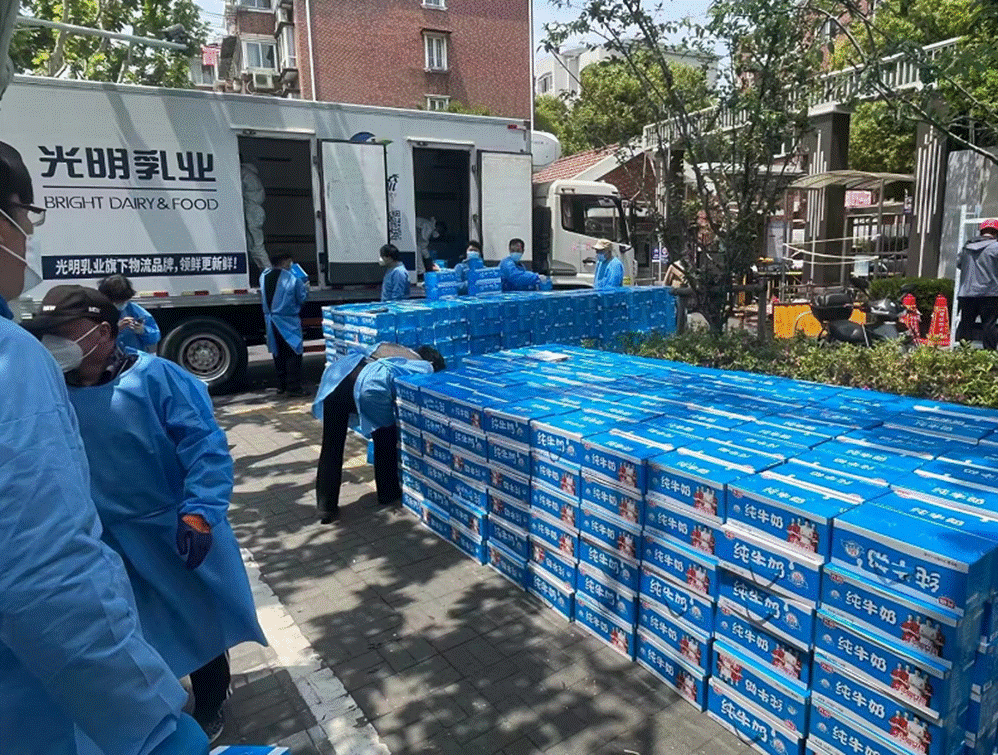 保供期間,光明領(lǐng)鮮物流除了做好光明牛奶產(chǎn)品的保供配送,還全力服務(wù)于公益活動,在此期間,領(lǐng)鮮物流臨時啟用浦東新區(qū)的成山路乳品八廠倉庫作為中轉(zhuǎn)樞紐,為全市60000多名獨(dú)孤老人、周浦醫(yī)院的醫(yī)務(wù)工作者、衛(wèi)計(jì)委、臨汾路等街道送上牛奶、糧油、豬肉、蔬菜等保供物資,累計(jì)總配送車次300趟次,總保障噸位達(dá)680噸。