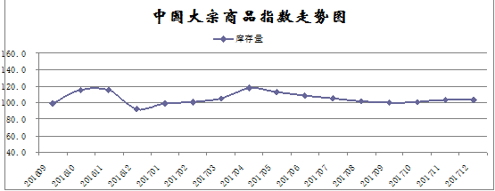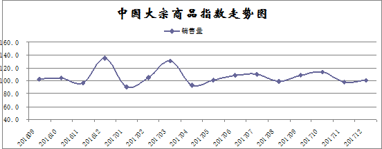 由中國(guó)物流與采購聯(lián)合會(huì)調(diào)查、發(fā)布的2017年12月份中國(guó)大宗商品指數(shù)為100.6%,指數(shù)止跌回升。各分項(xiàng)指數(shù)中,供應(yīng)指數(shù)繼續(xù)下跌,但跌幅有所收窄,銷售指數(shù)止跌回升,庫存指數(shù)繼續(xù)上升,但升幅明顯收窄,商品價(jià)格繼續(xù)上漲,且漲幅仍在擴(kuò)大。數(shù)據(jù)顯示,當(dāng)前國(guó)內(nèi)大宗商品市場(chǎng)需求上升,價(jià)格繼續(xù)上漲,供應(yīng)持續(xù)下降,供需銜接基本正常。綜合來看,當(dāng)前國(guó)內(nèi)大宗商品市場(chǎng)基本回歸穩(wěn)中趨升的基本態(tài)勢(shì),前期季節(jié)性因素影響造成的短期波動(dòng)基本平復(fù),但隨著價(jià)格高位風(fēng)險(xiǎn)不斷聚集,后期市場(chǎng)仍面臨調(diào)整風(fēng)險(xiǎn)。