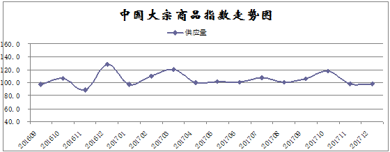 12月份,大宗商品供應(yīng)指數(shù)為98.4%,連續(xù)兩個(gè)月處于下降通道,顯示隨著全國(guó)多個(gè)省份目前正在嚴(yán)格執(zhí)行冬季環(huán)保限產(chǎn)政策,商品供應(yīng)有所下降,特別是鋼鐵、鐵礦石等黑色金屬生產(chǎn)企業(yè)開工率明顯下降,產(chǎn)量大幅減少。各主要商品中,鋼鐵和鐵礦石的供應(yīng)量明顯減少,原煤和汽車供應(yīng)量均較上月顯著增加,數(shù)據(jù)顯示11月份國(guó)內(nèi)汽車產(chǎn)量高達(dá)308萬輛,再創(chuàng)歷史記錄。