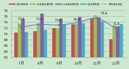 反映快遞物流外部運(yùn)營環(huán)境的便利度指數(shù)有所回落。12月份,便利度指數(shù)為7.8%,比上月回落3.6個(gè)百分點(diǎn)。分項(xiàng)來看,通行便利度指數(shù)為68.3%,比上月下降7.1個(gè)百分點(diǎn),政務(wù)服務(wù)便利度指數(shù)為73%,比上月下降3.3個(gè)百分點(diǎn),公共設(shè)施便利度指數(shù)為72.6%,比上月下降3.1個(gè)百分點(diǎn),投送便利度指數(shù)為73.4%,比上月下降0.9個(gè)百分點(diǎn)。