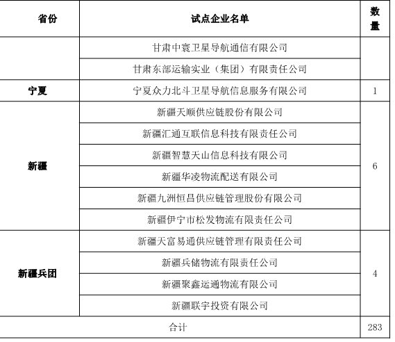 3月6日,交通運(yùn)輸部發(fā)布《交通運(yùn)輸部辦公廳關(guān)于做好無(wú)車(chē)承運(yùn)試點(diǎn)運(yùn)行監(jiān)測(cè)工作的通知》?!锻ㄖ凤@示,截至目前,29個(gè)?。▍^(qū)、市)共篩選確定了283個(gè)無(wú)車(chē)承運(yùn)試點(diǎn)企業(yè)并報(bào)部。