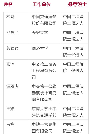 截至2月20日,全國已有多個學會和?。ㄊ小^(qū))科協(xié)陸續(xù)公示了2017年院士候選人。據(jù)不完全統(tǒng)計,交通運輸領(lǐng)域有以下候選人(排序不分先后):