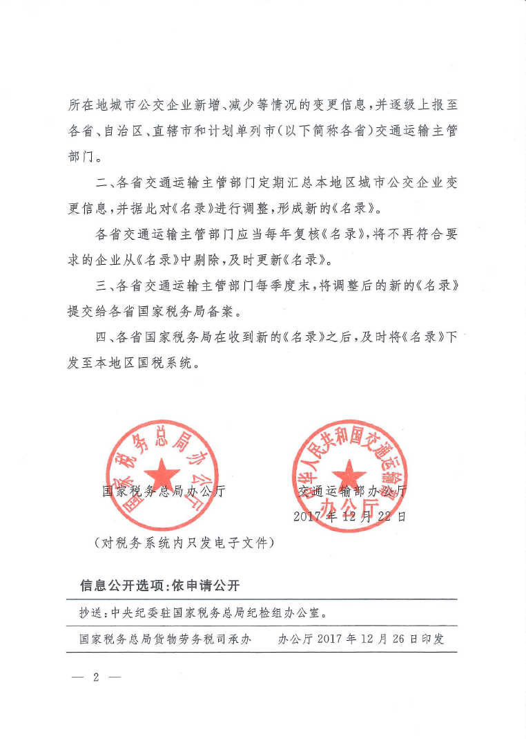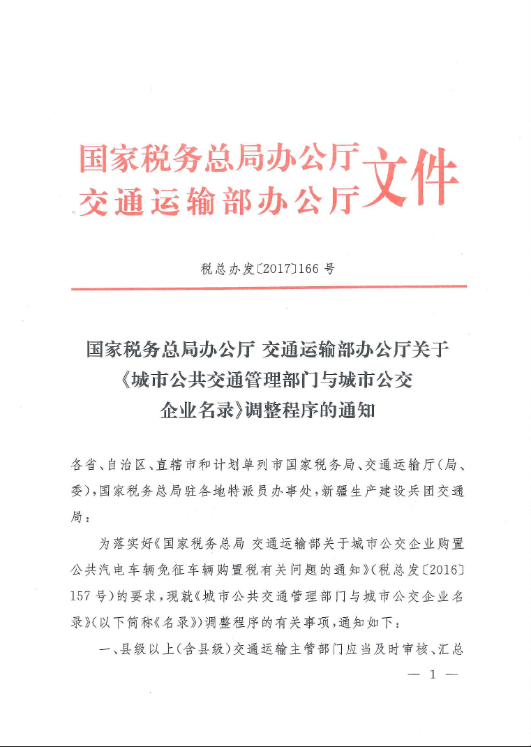國家稅務總局辦公廳 交通運輸部辦公廳關于《城市公共交通管理部門與城市公交企業(yè)名錄》調整程序的通知
