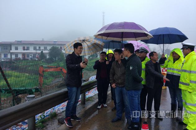 本次安全隱患引起省廳領(lǐng)導(dǎo)高度重視,搶修施工中(4月1日上午),廳巡視員吳銘漢、省高速集團(tuán)董事長王江軍、省交通集團(tuán)公司書記胡先金、經(jīng)理張城、省交建集團(tuán)經(jīng)理肖冬華及項(xiàng)目辦書記萬良紅、主任黃志華等主要領(lǐng)導(dǎo)陪同下親臨現(xiàn)場視察指導(dǎo)工作。